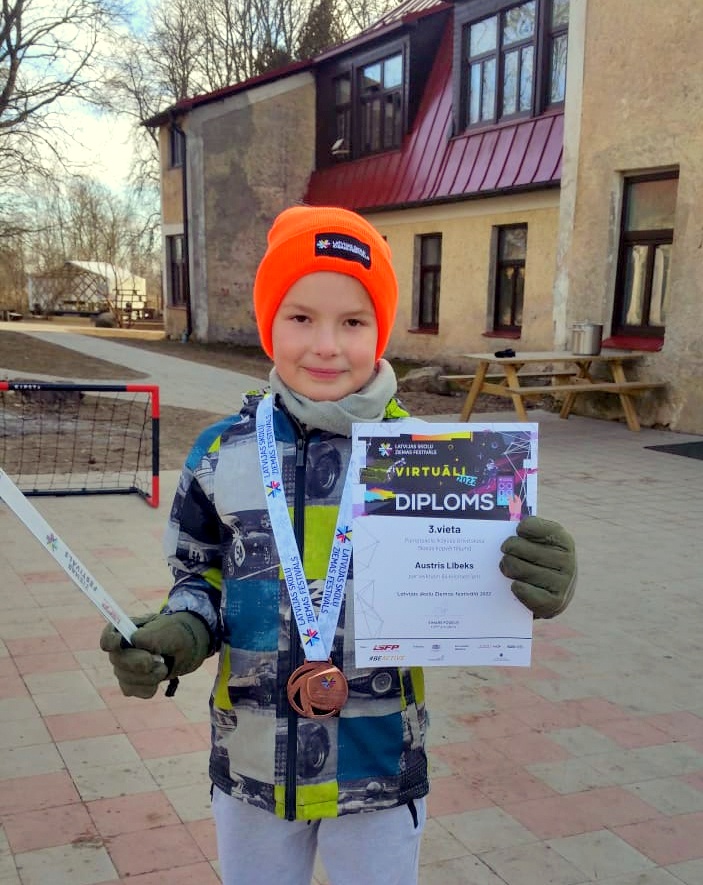 2. saimē ir arī savi “olimpieši” – tikko sveicām Austri ar bronzas medaļu, kura izcīnīta Latvijas skolu Ziemas festivālā, mūsu skolas zēnu konkurencē.